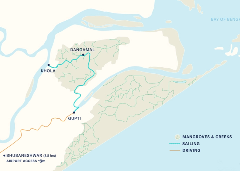 Arrive at the village of Gupti, which is approx. 3-½ hours’ drive from Bhubaneswar and a short distance from the nearby town of Rajnagar. Familiarize yourself with the Catamaran vessel. Time permitting, enjoy a walk along the river. A multi-course traditional meal awaits you in the evening giving you flavors of the region. Dinner & overnight onboard Catamaran at Gupti.