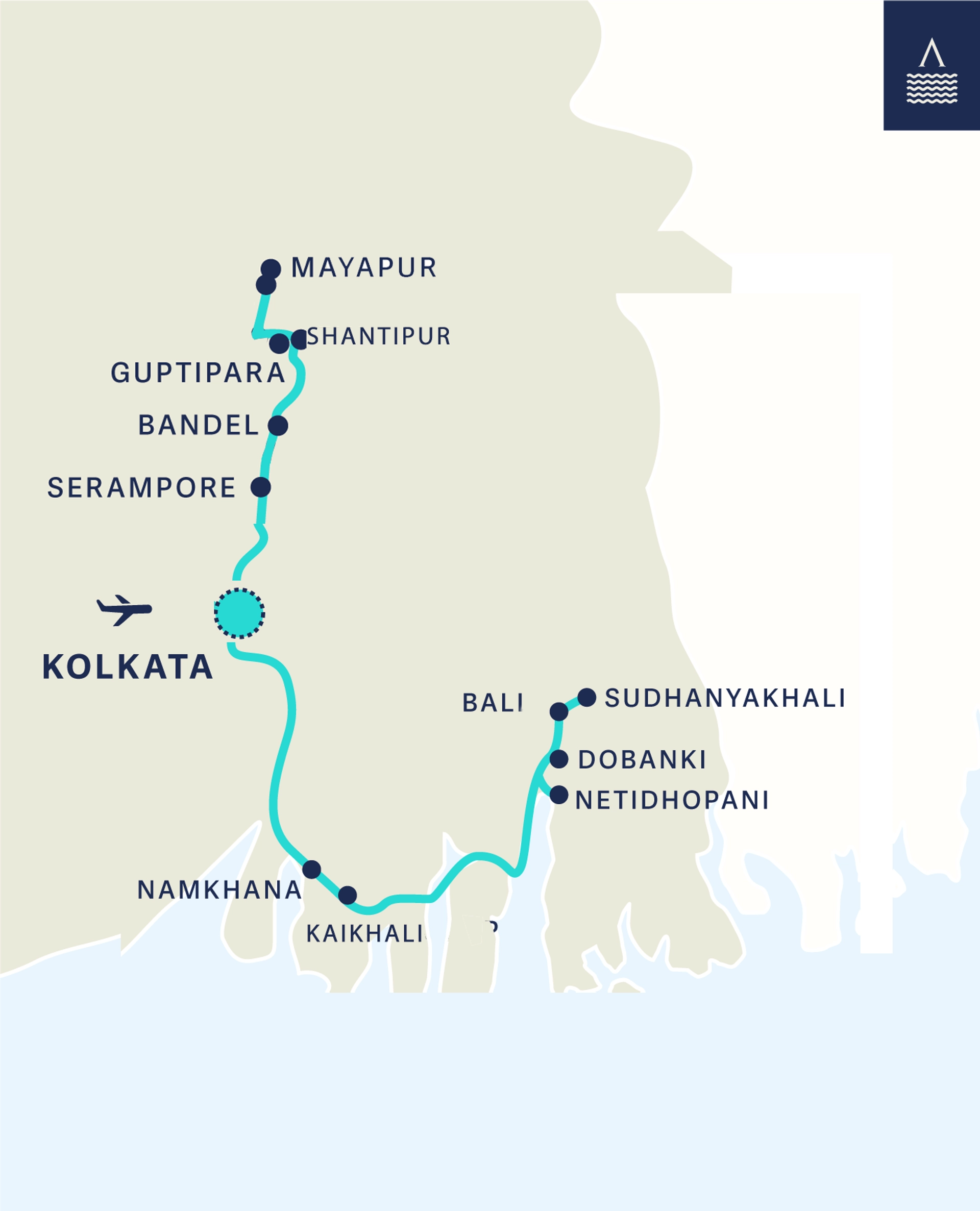 Today we sail back to Kolkata, crossing the creek as per tide chart and onward to Serampore passing below Kolkata’s famous landmark the cantilevered Howrah Bridge, and seeing various colonial buildings along the Hooghly River.